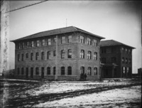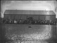 1952 A large group of school children posed at the side of the first school in Twin Falls.