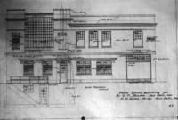 1797 Blueprints for the front elevation for potential two-story Bisbee Studio. Plans drafted by Twin Falls architect Ernest Gates.