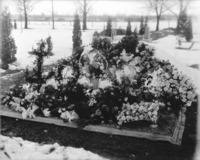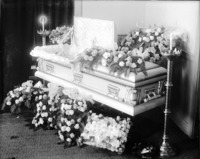 1783 Flag-draped coffin, flowers displayed beneath with a ribbon reading "Bert."