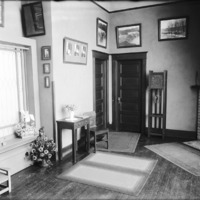 - Interior of Bisbee Studio; room has fireplace, framed photos, and photo props.
