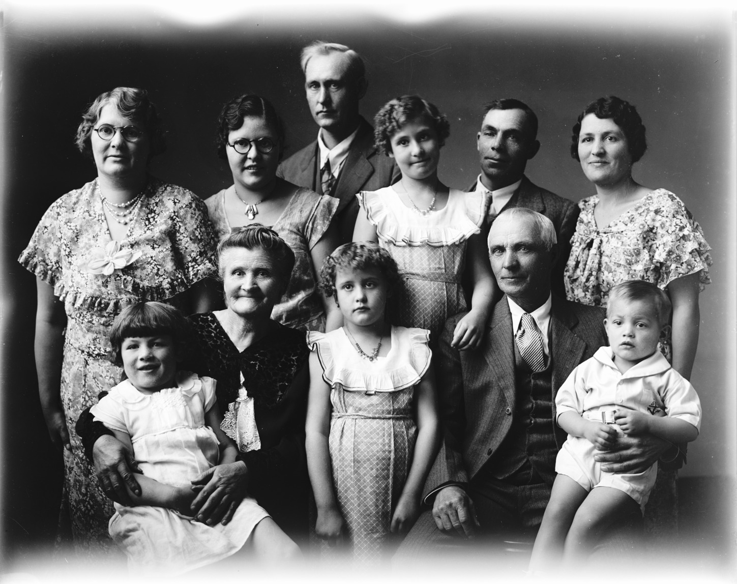 - Portrait of a family of eleven people (three men, four women, three girls, and one boy).