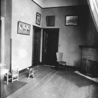 - Interior of the Bisbee Studio; room with slanted window, with chairs and props.
