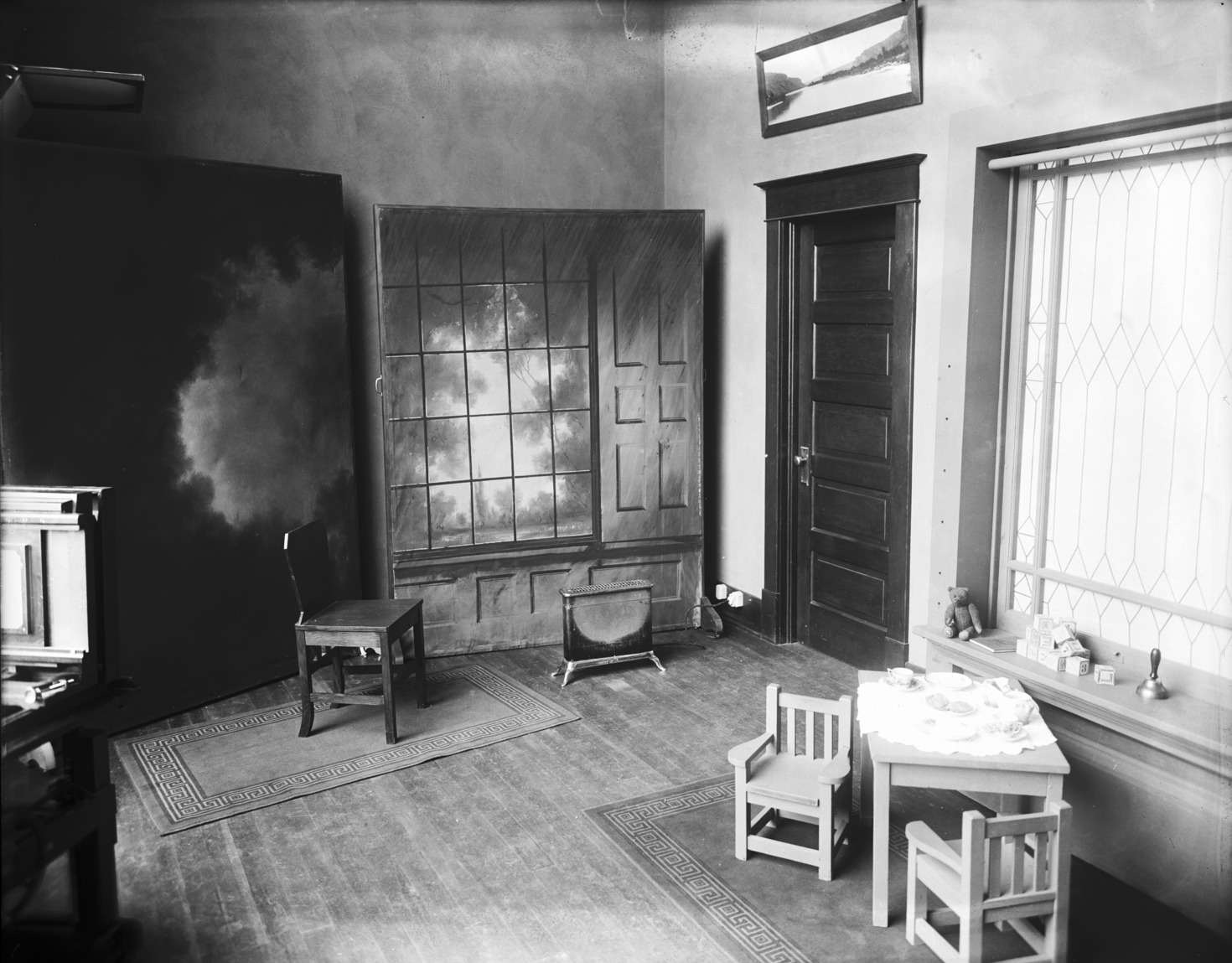 - Interior of the Bisbee Studio, with props and backdrops.