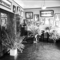 - Interior of the Bisbee Studio main room, with several potted plants.