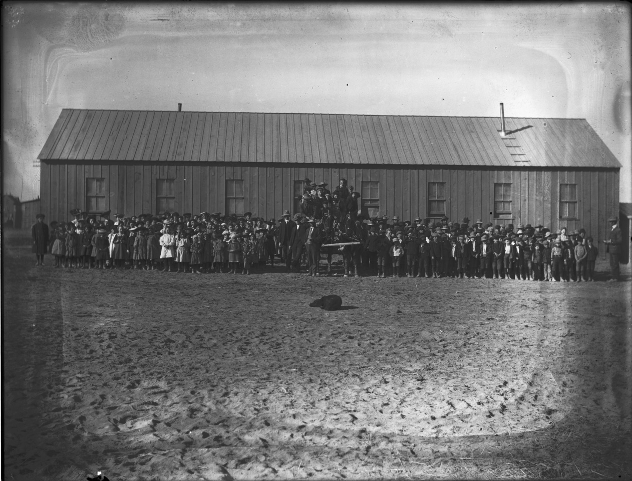 - A large group of school children posed at the side of the first school in Twin Falls.