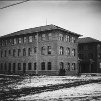 - The Hotel Perrine shortly after construction; a skiff of snow lays on the ground.