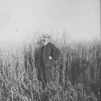 - Oats; Clarence Bisbee standing in a field of oats.