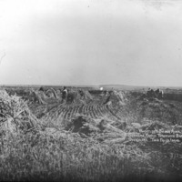 - "Wheat, 77 2/3 Bushels Per Acre. Schwamb Ranch. Turnipseed Brothers, Overseers, Twin Falls, Idaho;" Two men and a team of horses operating a reaper-binder in a wheat field.