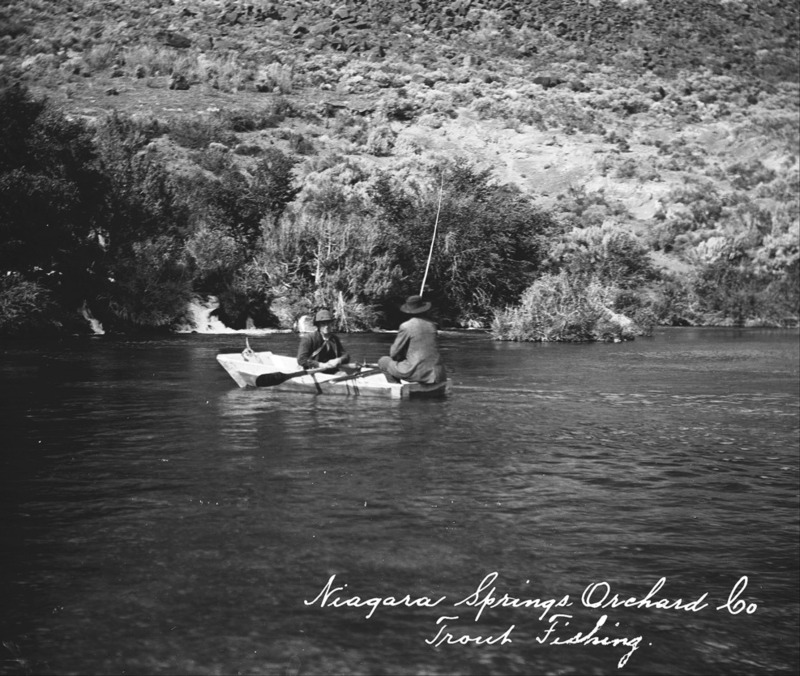 - "Niagara Springs Orchard Co, Trout Fishing;" two men fish from a boat