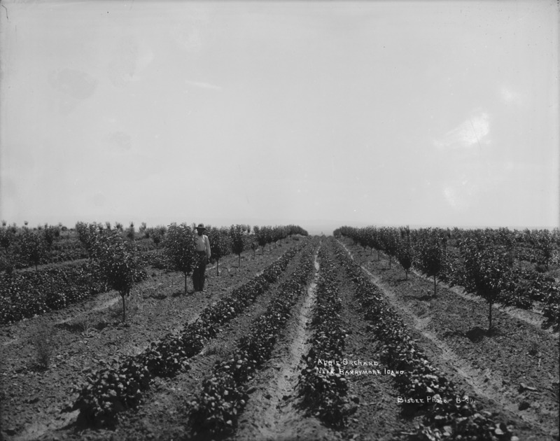 - "Apple Orchard, Near Barrymore, Idaho;" a man stands among new trees in an orchard southeast of Jerome