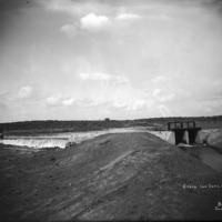 - "Check and Gate, North Side;" wide view of gate; small building in background