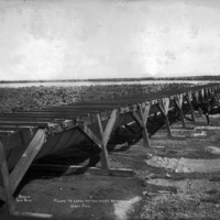 - "Flume to Carry Water Across Depression, North Side;" a man on a horse stands at the side of the flume