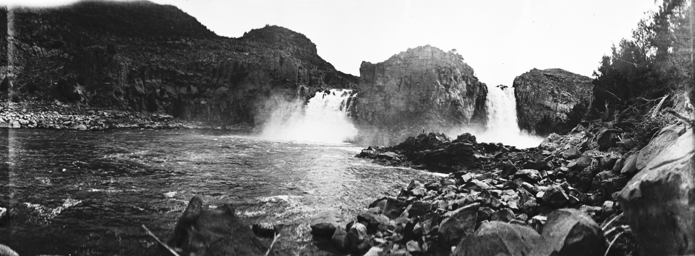- Wide view of the Twin Falls from the Snake River. Only two channels are visible.