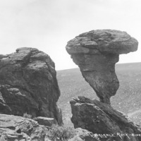 - "Balance Rock;" view of Balanced Rock and the rock formations to the east.