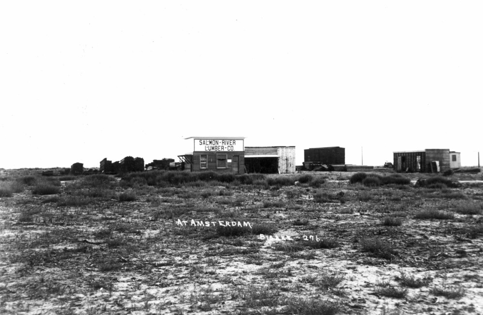 - "At Amsterdam;" wide view of Amsterdam, showing the Salmon River Lumber Company, and a few other buildings.