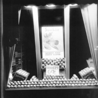 - Display in a store window advertising Sunkist Oranges.