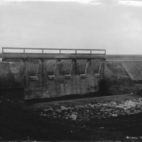 - A large concrete dam in a canal system.
