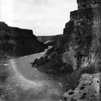 - "Below the Falls;" view west down the Snake River Canyon, below Shoshone Falls.