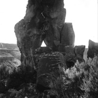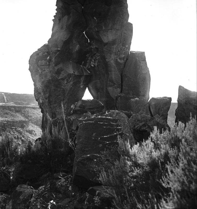 - A rock formation with a triangle-shaped hole along the Snake River Canyon.
