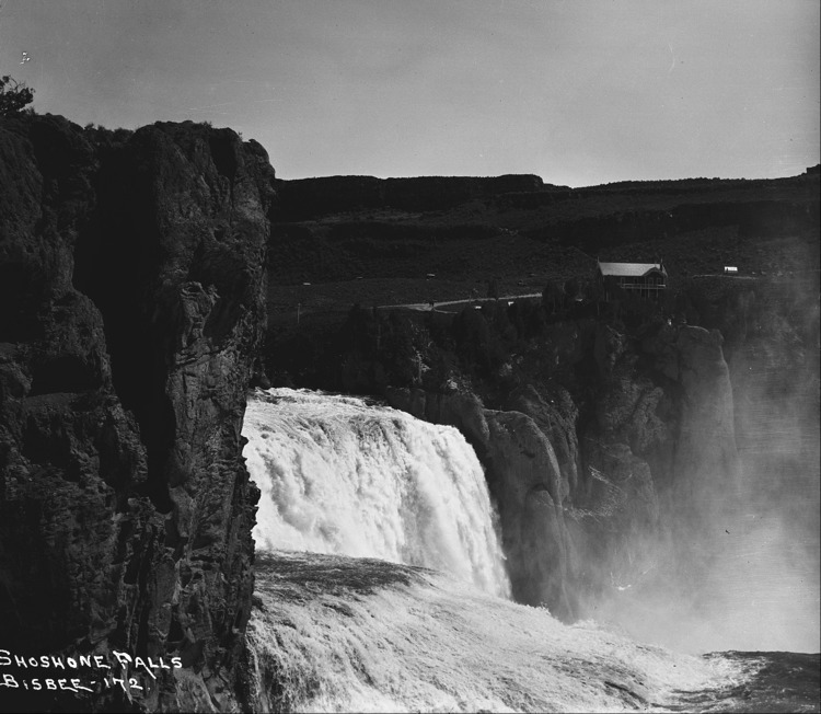 - "Shoshone Falls;" view of the Falls from the north side, with hotel in the background.