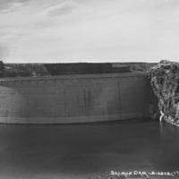 - "Salmon Dam;" water-level view of the front of the dam.