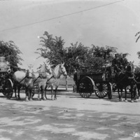 - Fire Department.; Views of horse-drawn fire equipment, and firemen also in the photo.