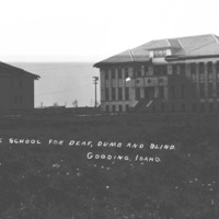 - "State School for Deaf, Dumb and Blind, Gooding, Idaho;" two large stone buildings viewed from across a field.