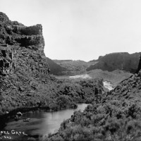 - "Sentinel Gate;" tall rock formation in the Snake River Canyon at Devil's Corral.