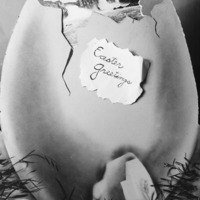 - "Easter Greetings;" photo of the Twin Falls waterfall at the top of a painted, cracked eggshell.