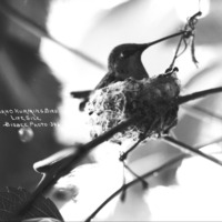 - "Idaho Hummingbird - Lifesize;" bird in its nest.