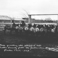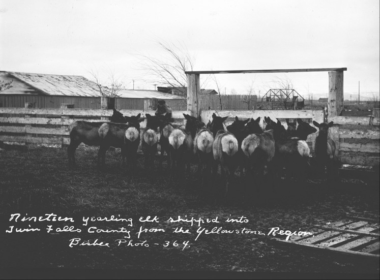 - "Nineteen yearling elk shipped into Twin Falls County from the Yellowstone Region;" young elk in a corral.
