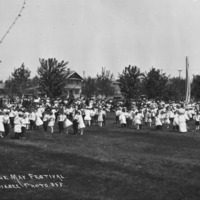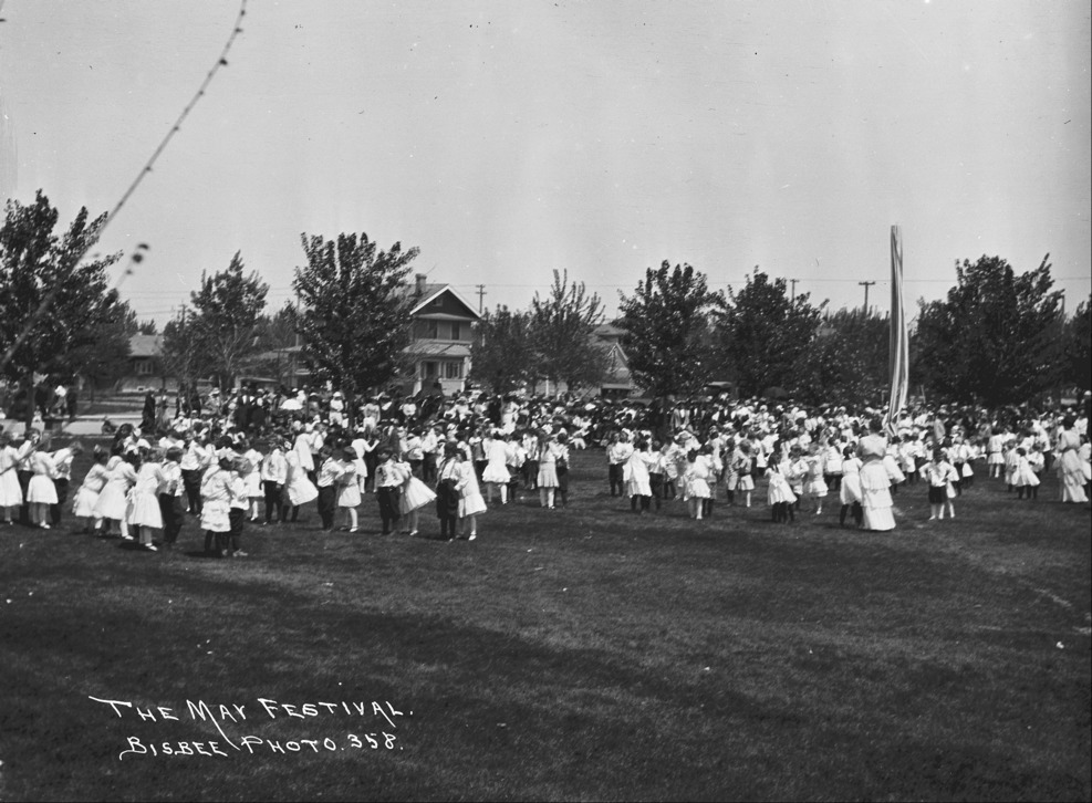- "The May Festival;" children gather near a maypole, with a crowd of people watching in City Park.