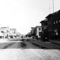 - Looking southeast down Main Ave. Visible buildings and businesses include: Drugs; First National Bank, Rogerson Hotel, Twin Falls Bank and Trust, Hotel Perrine, Buhl Land; Twin Falls Grocery.