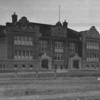 - Lincoln School soon after construction. The athletic field outbuilding is in background at right.