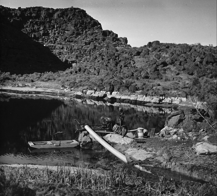 - A man filling the radiator on an old automobile (car) that has been converted into a water pump at a small lake in the Snake River Canyon.