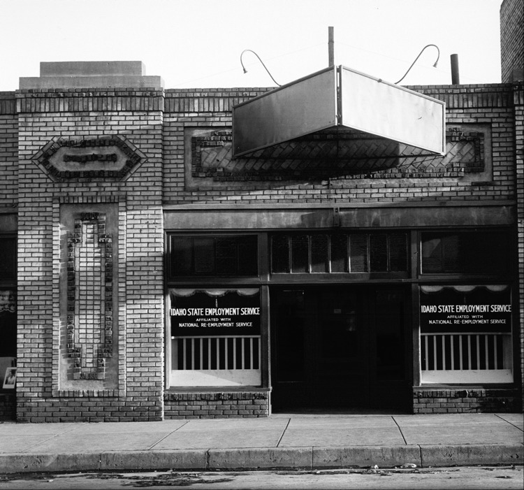 - The Idaho State Employment Service Office to the right of the Bisbee Studio. (Sign also reads, "Effiliated with the Re-Employment Service;" a large sign holder with lights juts from above the entrance.