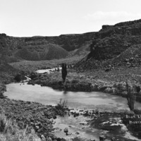 - "Blue Lakes;" looking northeast up the Blue Lakes Canyon from the bottom of the grade to the I.B. Perrine Ranch.
