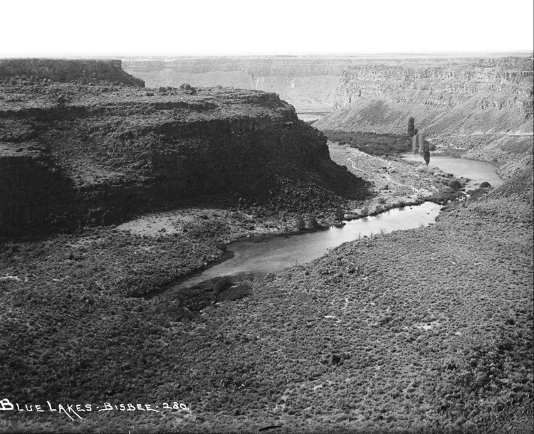 - "Blue Lakes;" looking southwest at the lakes from the top of the Snake River Cqanyon.