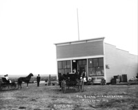 PC-2267 "The Store at Amsterdam. August 17th, 1912;" a wood frame general store with two buggies, with horses, and several people standing in front of and next to building.