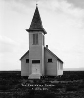 PC-2266 "Amsterdam Church;" plain wood church with tall steeple.