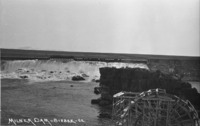 PC-2074 "Milner Dam;" head gates; wooden water wheel in foreground.