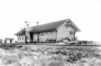 GB 003 Railroad station (depot) in Filer, a man stands in front.