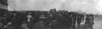 C 053 Panoramic view of a drawing for town lot, with a large crowd of in front of a land office building.
