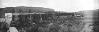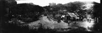 C 020 Panoramic view of the top of Shoshone Falls, taken from the north side of the canyon; Shoshone Falls Hotel in background at right.