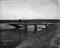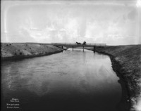 B 140 "Bridge Over Main Canal; North Side;" a horse and buggy stopped on a short bridge over a canal.