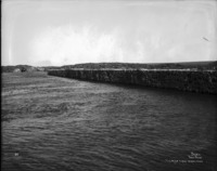 B 141 "The Main Canal; North Side;" water fills the canal next to a rock wall.