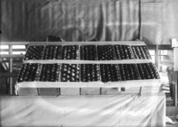 1993 A display of boxes of apples. One carton reads "J. Hammons and Son; Twin Falls, Ida; 1911"