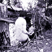 - A woman gathers some wild mushrooms near a collapsed tree. Beside her is a barbed wire fence.