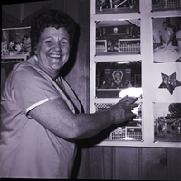 - Mrs. Don Albin stands beside a poster in an office displaying photographs of different booths at the Twin Falls County Fair. She creates unusual and attractive decorations for fair-related events.