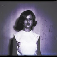 - Carol High, dressed in a white shirt and dark skirt, shows off her short flipped bob hairstyle from a front view.